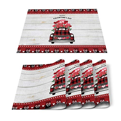 π₯ Crazy Deals PIEPLE Valentine's Check Truck Load of Love Placemats for Dinning Table Set of 6 Waterproof Cloth Table Mats,Cotton Linen Place Mats Dinner Mat Easy Clean Resistant Holiday Table Decor Washable